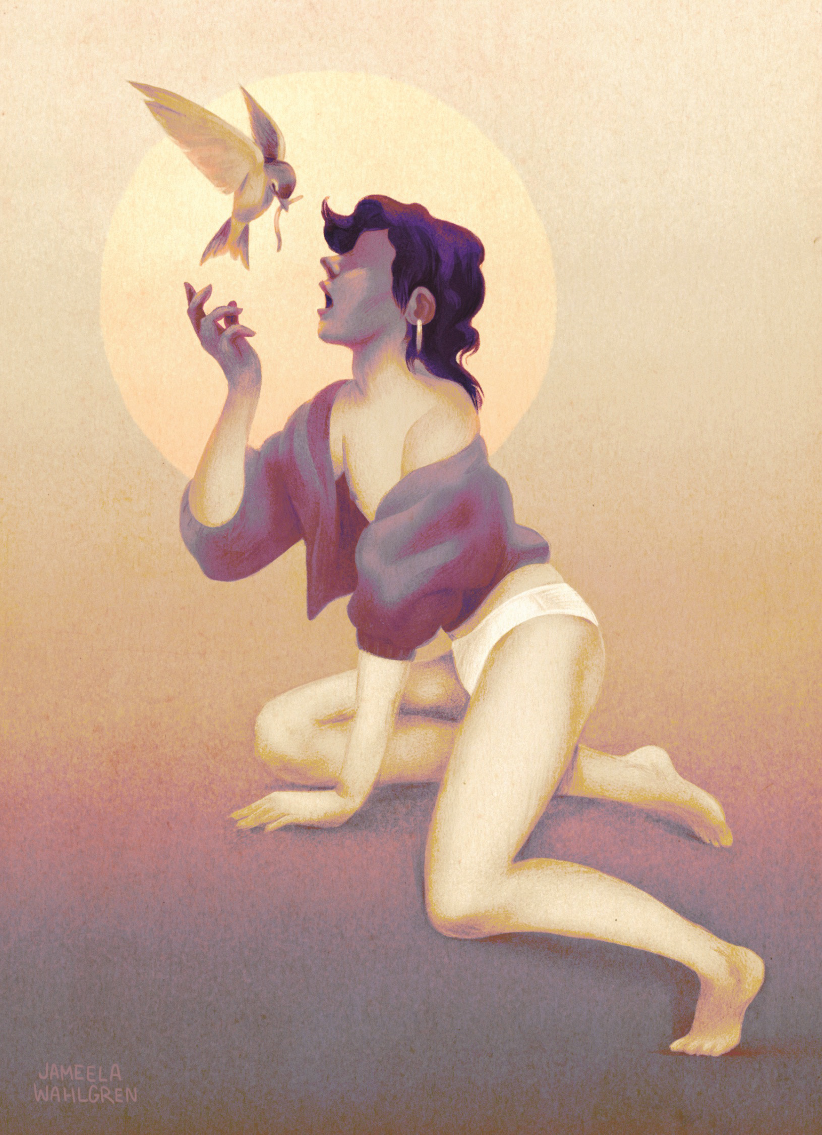 An illustration to convey the concept of being so desperate for love and affection that you'll accept it from unhealthy and inappropriate sources. When you want a full meal but you'll be happy to get breadcrumbs.